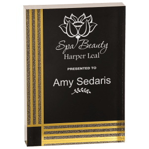Premier Acrylic is the ultimate way to recognize and honor. Black Diamond Acrylics are self-standing and 1 inch thick. They come in 4 different sizes and 2 different styles- Peak and Rectangle. They are easily customizable by either rotary engraving or laser engraving.